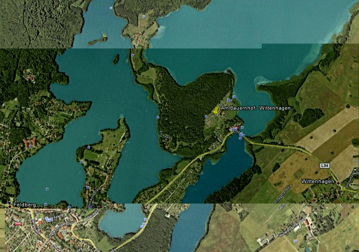 Campingu am Bauernhof (53°20'41.96"N 13°27'23.29"E) koło Feldbergu graniczy z Naturparkiem (Rezerwatem Przyrody) ……… głębokie b.czyste jeziora i strome zalesione zbocza dominują nad krajobrazem .