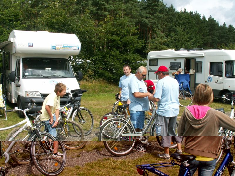 Na miejscu byliśmy ok. 18 ( ok. 85 km ) ponieważ mieliśmy rezerwację nie było problemu z miejscami. Rowery z „wozów” i pierwszy rekonesans trasa rowerową , obowiązkowo najbliższy ALDIK i okolice jeziora.